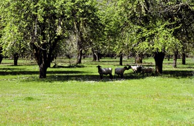 DWARF: 10 foot spacing MARK - A very productive, early bearing rootstock clone that is more tolerant of heavier, wetter soils than most. MARK appreciates regular irrigation and may not thrive in sandy, droughty soil conditions. It may usually be grown without staking. Feedback from our customers indicates that trees on MARK are at risk where high fireblight conditions prevail. We have offered grafts on MARK for many years - but availability is becoming increasingly sporadic. Please check on supplies before ordering. ............................ Other rootstock choices may be available to our customers in multiples of 50 trees. For a more thorough discussion of rootstocks, please refer to The Handbook for Fruit Explorers by Ram Fishman . Though currently out-of-print, it can still be purchased from used book dealers for a reasonable price. In Praise of StandardsIn the past few decades there has been a radical shift in the way fruit trees are grown. The old-fashioned orchard of large spreading trees is rapidly being replaced by densely planted, intensively managed rows on dwarfing rootstock. Dwarf trees, once the reliance of the home orchardist are becoming the backbone of the commercial industy. Agribusiness has begun to treat fruit trees like row crops - short term investments that yield maximum profits. We foresee a time when the grand old standards will become isolated relics of a less cost-efficient past. This, we feel, would be a shame, and not just on sentimental or aesthetic grounds. Our years of fruit exploring in old homestead orchards have taught us to respect these venerable giants for their ability to endure. They have stood up to drought and storm, deer and porcupine, grasshoppers and borers. Though no human may come to harvest their fruit, these old standards continue to produce crops against a multitude of odds. Grafted on seedling rootstock, they partake of a health and vigor inherent in sexual reproduction. It is our contention that these standard-sized trees still deserve a place of honor in the future orchard. It is these magnificently inconvenient specimens that are most likely to bear fruit for our great-grandchildren's generation. So please, where space permits, consider the merits of planting at least a few old-fashioned standard-sized trees. We should remember that a chief beauty of fruit is that it grows on TREES - real trees that form the foundation of a permanent and sustainable agriculture, that will even tolerate the vagaries of the human condition. (From The Greenmantle Catalog © 1983) |