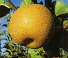 When we first started growing Asian pears, they were an exotic and hard-to-find class of fruit. We were able to get started with the help of Knox Namura of Washington State. Then came the great Asian Pear boom, with thousands of acres planted to this "new" fruit. By now, the market has leveled off due to the predictable glut of over-production. Unlike their Euro-American cousins, Asian pears need to be picked at the peak of ripeness; they do not sweeten up in storage. For this reason, many consumers have been sadly disappointed by supermarket produce specimens. Nashi are still an excellent choice for the home orchardist, ripening typically in September before the height of apple season. They grow well in most places suitable for apples and "domestic" pears. Asian pears will be an attractive feature in the garden landscape: Beautiful in bloom and in fruit, their vivid Autumn foliage colors can be particularly striking. Bartlett can be used as a pollinizer, but the Asian pears begin to flower a week or two earlier: hence, reliable pollination requires two Asian varieties. This also means that the crop is at risk in places subject to heavy late frost. RootstocksWe graft our Asian pear varieties on Pyrus betulaefolia seedling rootstock. This makes for vigorous standard trees requiring 20 foot centers. Semi-dwarf Asian pear trees on Euro-American (Pyrus communis) understock like the Old Home x Farmingdale (OHxF) series may tend to go into early decline - and cannot be recommended. ASIAN PEAR VARIETIES