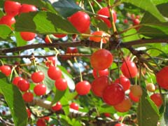 Here we have another heavenly Prunus fruit that eludes and frustrates many growers. The first battle is getting the young trees to survive and thrive. Next come the vagaries of weather and pollination. And finally, just when the crop seems bountiful, the flocks of birds arrive.