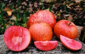 apple varieites, see the article Albert Etter and the Pink-Fleshed