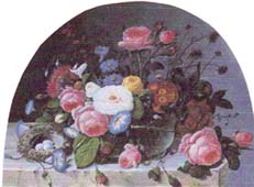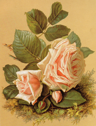 " Oh no man knows Walter de la Mare (1873 - 1956 ) Forty centuries ago a few traditional bloodlines had already been established in the cradles of ancient civilization. Minoan frescos and Egyptian tomb garlands testify to the presence of recognizable roses. In the areas around the Mediterranean, a primitive form of the Gallicas was being grown for the medicinal virtues of its dried flowers. The exquisite Damask rose held an honored place - prized for the quality of its fragrant oil and the ability of a particular form to give flowers in Autumn. The Greco-Roman world is saturated with the fragrance of roses which were used to embellish all aspects of life.